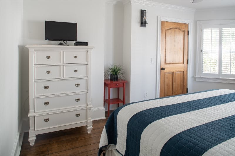 Welcome to Harbor Master! This patriotic King Suite is located on the second floor and is equipped with private bath with walk-in shower.